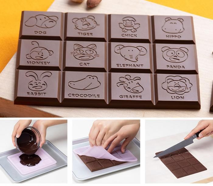 板チョコが作れるシリコーン型です。12種類のキャラクターの顔と英名が入ったデザインです。そのまま一枚で食べても、一口サイズに割っても楽しめます。