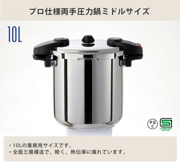ワンダーシェフ プロ ミドルサイズ 両手圧力鍋 10L NMDA10 送料無料 当日出荷 分類で探す キッチングッズ 鍋 圧力鍋 ブランドで探す ワンダーシェフ 価格帯(税込) 2万円台の商品 キッチン用品 送料無料 ラッピング承ります プロ仕様のミドルサイズ両手圧力鍋 ステンレス-アルミ-ステンレスの全面三層構造で 軽く 熱伝導に優れています 期間限定で「男の厳選レシピ」が付属していますwonderchef-610522 メーカー希望小売価格48,400円(税込) 28,600円(税込)0円 SOLD OUT 製品について性能詳細お買い物ガイドクロッカについてプロ仕様のミドルサイズ両手圧力鍋 プロ仕様のミドルサイズ圧力鍋。収納時に取っ手が邪魔にならない両手タイプ。ステンレス-アルミ-ステンレスの全面三層構造で、軽く、熱伝導に優れています。ご家庭でラーメンスープやチャーシューを作る時にも活躍するサイズです。期間限定で「男の厳選レシピ」が付属しています。 ガスコンロでもIH調理器でも安心してご使用いただけます。 サイズ本体:約W360×D258×H290mm内寸:約直径230×深さ240mm 調理容量約6.6L(豆類線:約3.3L) 最大調理量白米:一升(約10合)、大豆:約1kg 作動圧力98kPa(2気圧) 重量約3.35kg 主な材質ステンレス,アルミ,フェノール樹脂 付属品男の厳選レシピ(8品)、取扱説明書、蒸しす、掃除ピン 生産国マレーシア 備考○製品安全協会(SGマーク)、経済産業省(PSCマーク)取得商品○メーカー保証5年間 タイプ サイズ片手圧力鍋 3.0L 片手圧力鍋 4.0L 両手圧力鍋 5.5L 両手圧力鍋 10LRERATED ITEMS関連商品カジュアルプロダクト イングリッシュ ティーポット 400ml 耐熱ガラスカジュアルプロダクト イングリッシュ ティーポット 800ml 耐熱ガラスカジュアルプロダクト リンゴ型ソルト&ペッパーセットカジュアルプロダクト アミ式回転茶こし Sカジュアルプロダクト アミ式回転茶こし L