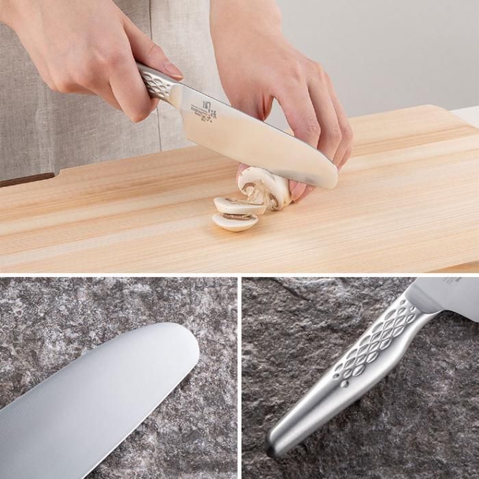 食器洗浄機にも対応しておりますので、常に衛生的にご使用いただくことができます。食材への切断抵抗を小さくする独自の研削加工により、食材への切り込みの良さと鋭い切れ味を有しています。