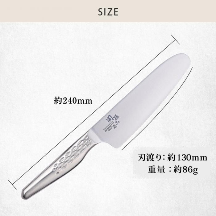 KAI独自の設計により、ハンドル内部まで刀身を通すことでハンドルと刀身のバランスの良さ、抜群の耐久性を実現させました。