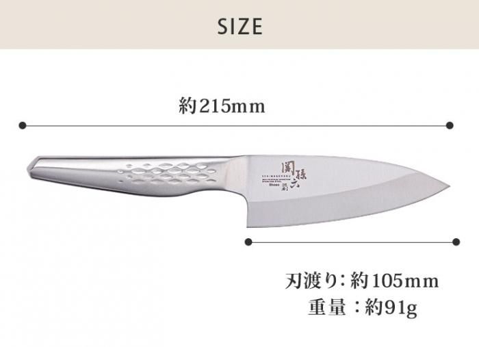 継ぎ目のない、一体構造のオールステンレスタイプ。小出刃は、鯵や鰯など小さめの魚に適したサイズです。