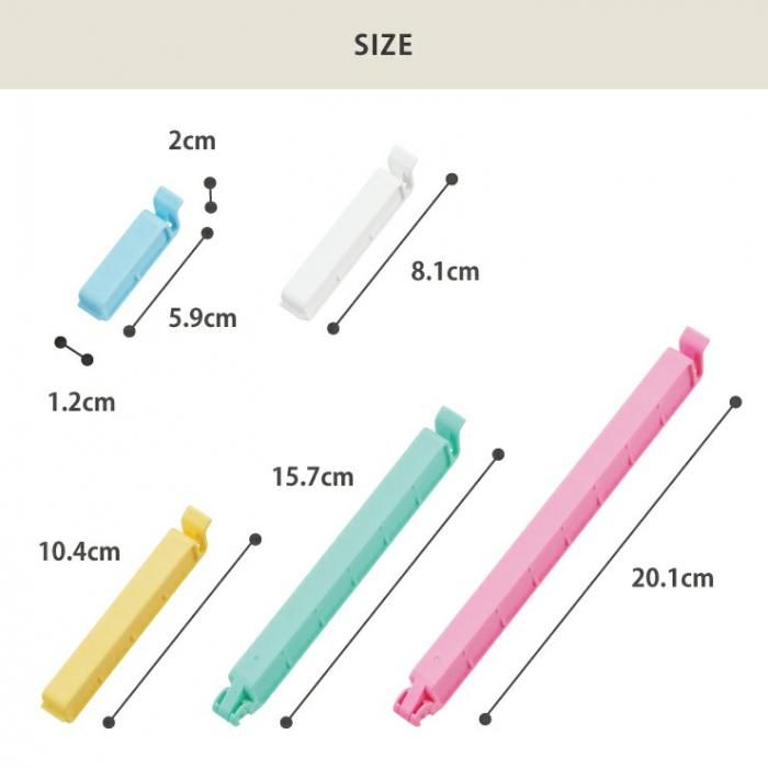 パチン!と閉じてしっかり密閉。繰り返し使える丈夫な袋クリップ。
