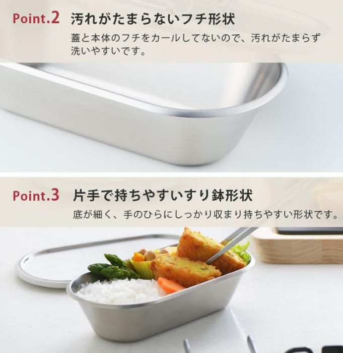 お弁当箱や保存容器としてお使いいただけます。清潔なステンレスを使用し、シンプルなデザイン。お料理の作り置きをしてそのままテーブルに並べてもすっきりとお使いいただけます。