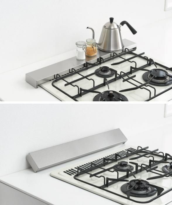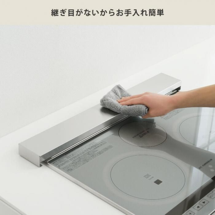 すっきりフィットする排気口カバーは、継ぎ目のない一枚板のステンレスで作られたフラットタイプの排気口カバー。