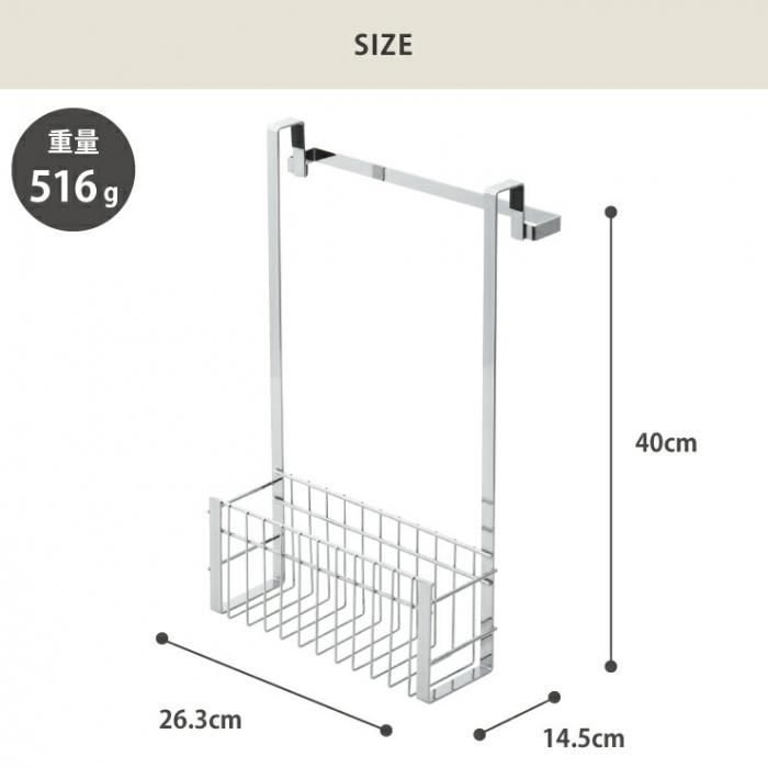 ハイ! シンク扉に掛けて使えるタオルハンガー&バスケット 1306188 送料無料 当日出荷 分類で探す キッチングッズ キッチン収納 タオル・布巾ハンガー ブランドで探す ヨシカワ ハイ Hi! 特集ページ 新生活に揃えたい おすすめ商品 キッチン 価格帯(税込) 4,000円台の商品 キッチン用品 送料無料 ラッピング承ります シンク下の扉にセットして裏側のスペースも有効活用できる収納ラック 表はタオルバー 裏はバスケットになっていてゴミ袋や洗剤のストックなどを収納できます hi-1306188 メーカー希望小売価格4,950円(税込) 3,850円(税込)0円 在庫入荷待ちタオルハンガー&バスケット3,850円(税込)3,850円(税込)在庫なし 数量 カートに入れる 製品について性能詳細お買い物ガイドクロッカについてシンク下の扉にセットして裏側のスペースも有効活用できる収納ラック 毎日の台所仕事がちょっと楽しくなるように考えられたHiシリーズ。ステンレス製を中心に水回りから収納用品まで、ちょっとあると便利なアイテムばかり。すべて新潟県燕三条産です。 観音扉のシンクにセットして、扉の裏側のスペースも有効活用。表はタオルバー、裏はバスケットになっていてゴミ袋や洗剤のストックなどを収納できます。 サイズ全幅26.3×奥行14.5×全高40cm 材質本体:スチール(クロムメッキ)、滑り止め:合成ゴム 重量約516g 対応サイズ扉の厚さ:約2.5cm以内、幅25cm以上、上から2cm以内に障害物のない扉に対応 生産国日本(新潟県燕市) RERATED ITEMS関連商品タワー キッチンタオルハンガー ホワイトタワー キッチンタオルハンガー ブラックトスカ 折り畳み布巾ハンガー 2962トスカ マグネットキッチンタオルハンガー 7823トスカ キッチンタオルハンガー 7818tosca 布巾ハンガー ホワイト 7822 山崎実業