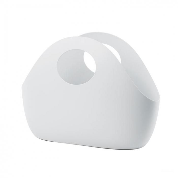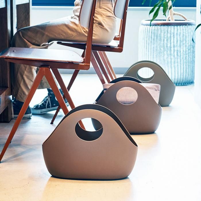 コロンとした丸みを帯びたデザインで、持ち手の穴に腕を入れることができるので持って街を歩きたくなります。
