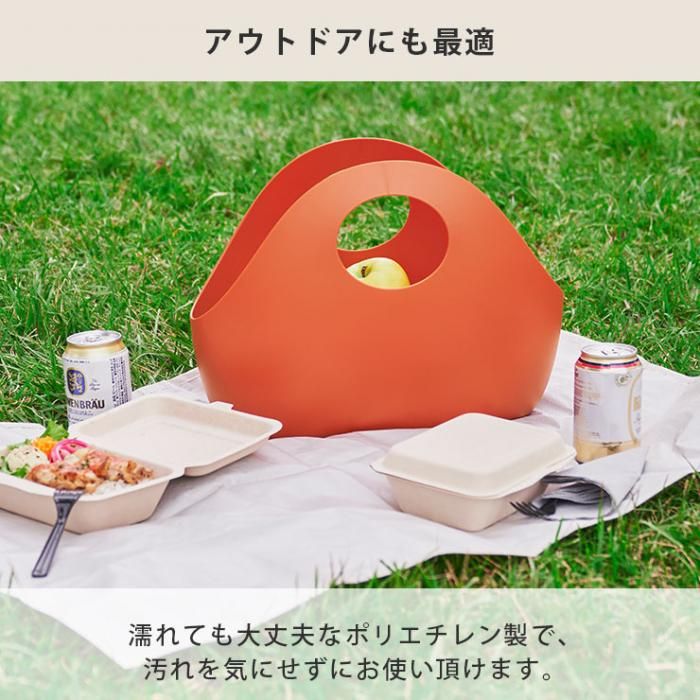ベランダでの休日ランチや、リビングでリモコン類の収納に。また、濡れてもOKな素材なので、洗面所やキッチンなどの水回りでも気にせず使えます。