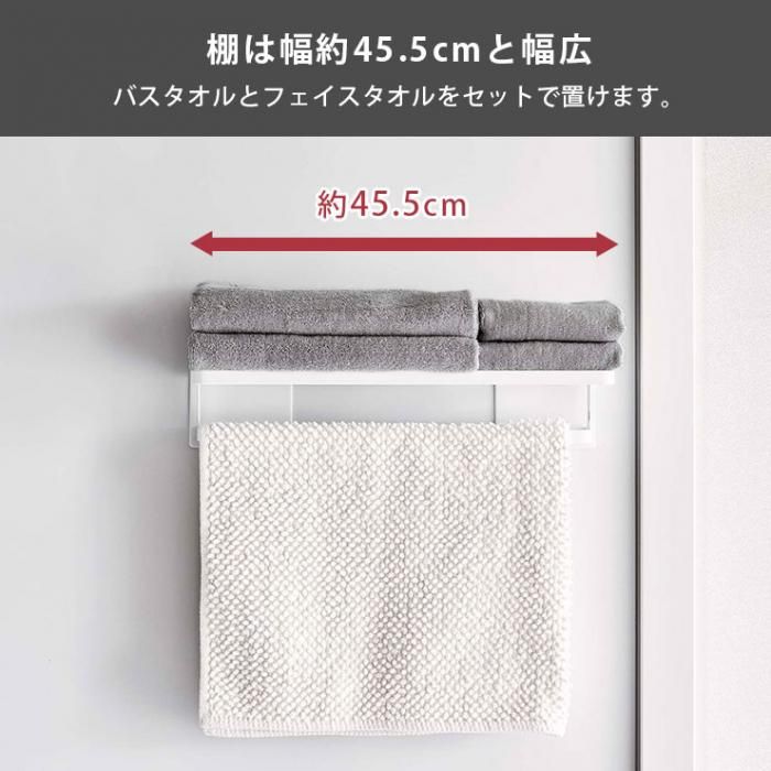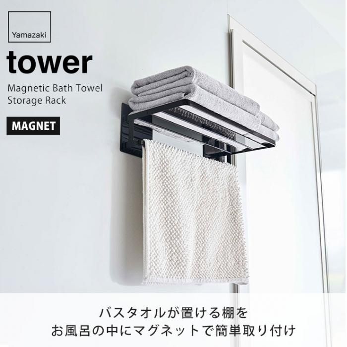 タワー マグネットバスルームバスタオル棚 8180/8181 送料無料 分類で探す インテリアグッズ 風呂・バス用品 風呂・洗面所収納 ブランドで探す 山崎実業 タワー tower 特集ページ 新生活に揃えたい おすすめ商品 お風呂まわり 価格帯(税込) 4,000円台の商品 風呂用品 送料無料 ラッピング承ります バスタオルが置ける棚をお風呂の中にマグネットで簡単取り付け 冬場の寒い時期にお風呂の外に出ずに身体を拭くことができます tower-8180-1 4,840円(税込)0円 在庫入荷待ちブラック4,840円(税込)在庫なし4,840円(税込)在庫なし SOLD OUT 製品について性能詳細お買い物ガイドクロッカについてバスタオルが置ける棚をお風呂の中にマグネットで簡単取り付け バスタオルが置ける棚をお風呂の中にマグネットで簡単取り付け。バスタオルとフェイスタオルが一緒における幅があり、ホテルのタオル置きのようにスッキリ片付きます。下のバーにバスマットをかけて干したり付属のフックでバス小物を吊り下げても便利です。冬場の寒い時期にお風呂の外に出ずに身体を拭くことができます。 材質本体:スチール(ユニクロメッキ+粉体塗装)、マグネット滑り止め:シリコーン サイズ約W48×D20×H13cm 内寸サイズ棚:約W45.5×D19.5cmバー:約W45.5×D4.7cm 重量約1.4kg 耐荷重約2kg (棚:約1kg、バー:約1kg、フック1つあたり:約250g)衝撃をゼロとした場合の静止耐荷重です。 取り付け可能な壁面マグネットがつく平らな面、スチール壁面使用の前に必ずご確認ください。あらかじめマグネットがつくことや、十分な保持力が得られることをご確認の上ご使用ください。浴室の壁の種類によってはご使用頂けない場合があります。 付属品フック×4 生産国中国 ブランド 製造元tower -タワー 山崎実業RERATED ITEMS関連商品タオルスタンド スチール 布巾掛け タオルかけ タオル掛け ラック 棚 ラック シェルフ 収納 キッチン収納 おしゃれ コンパクト スリム リビング キッチン ダイニングtower シェーバーホルダー 吸盤 ホワイト 2967トスカ 洗濯機横マグネット収納ラック 3312タワー タオル掛け上ラックタワー 洗濯機横マグネット収納ラック 3307/3308tower タオルバーハンガー ホワイト・ブラック 3313,3314タワー 吸盤トゥースブラシホルダー 5連 3285/3286タワー マグネットバスルーム タオルハンガー 3267/3268タワー マグネットバスルーム ラック 3269/3270