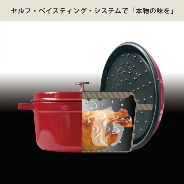 - 無水調理も可能にしたストウブ独自のセルフ・ベイスティング・システム