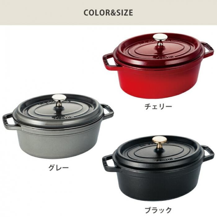 お料理をもっと美味しくする魔法のお鍋。ストウブのベーシックなココット鍋。煮込み・炒め物など日常使いで大活躍。オーバル型は長さのある食材をそのまま調理できます。