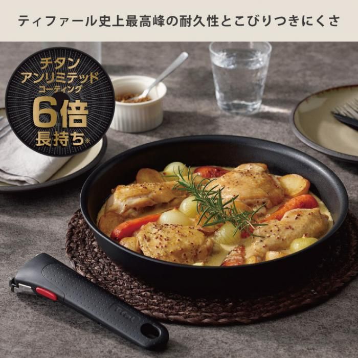 ティファール史上最高峰の耐久性を実現したチタン・アンリミテッドコーティングで、使い始めのこびりつきにくさが長く続きます。