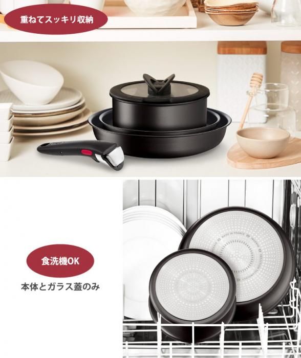 取っ手がとれるから、簡単に洗えて便利。本体とガラスぶたは食洗機にも対応。