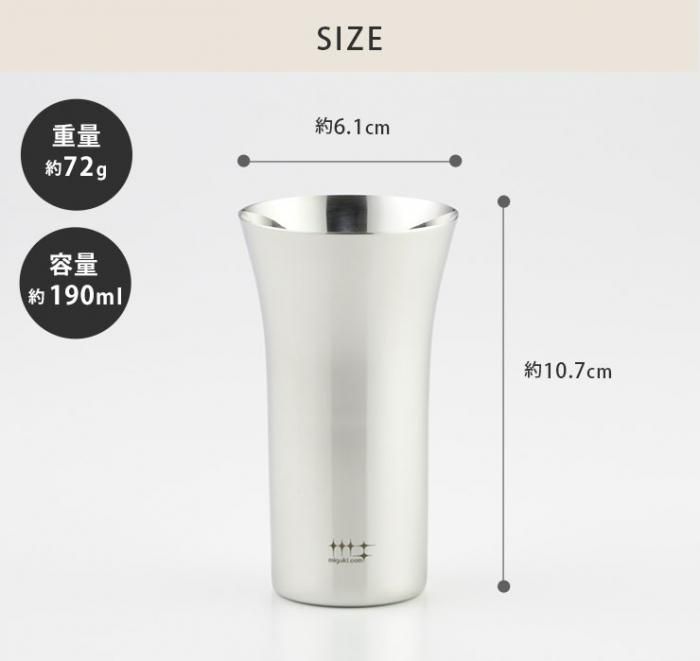 「一口ビール 190ml」は、くいっと飲みやすい小振りなタイプ。ビアタンブラーの中で一番小さいサイズです。食前酒のグラスとしてもおすすめです。