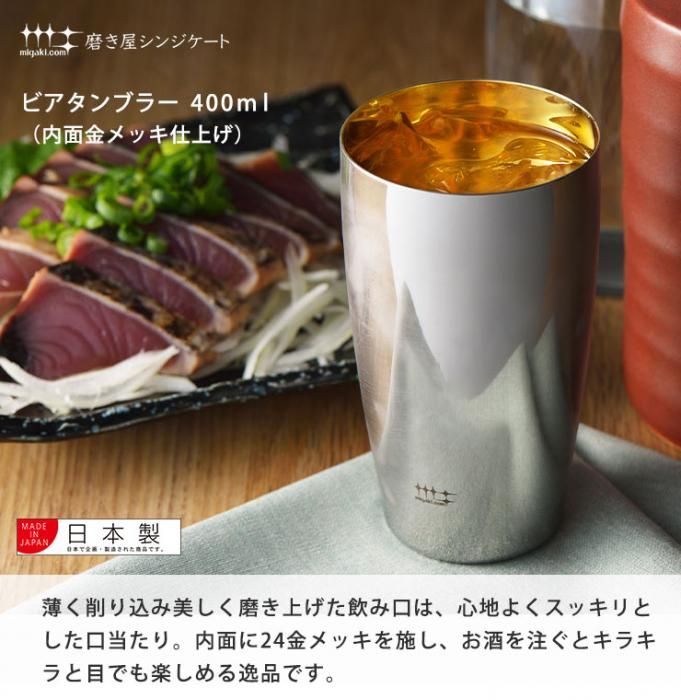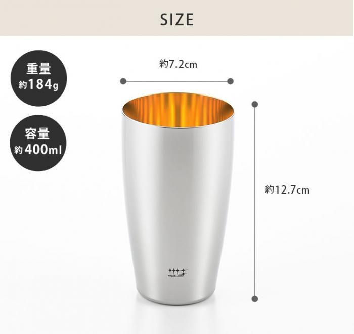豪華なひとときをお楽しみいただけるように内面に24金メッキを施したビアタンブラー。お酒を注ぐとキラキラと目でも楽しめる逸品です。