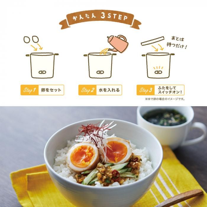 固ゆで・半熟のゆで卵はもちろん、温度調節が難しい温泉卵まで簡単に作ることができます。