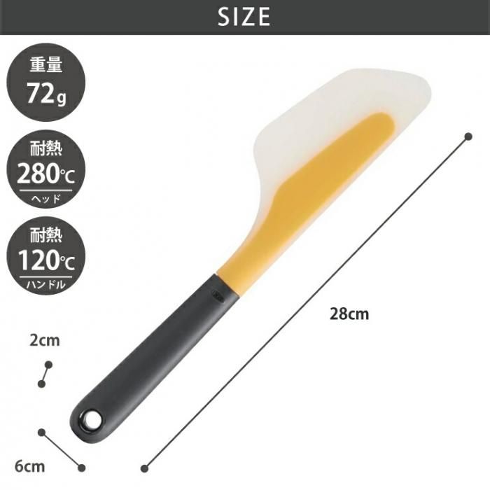オクソー オムレツターナー ミニ 11140800 メール便 送料無料 分類で探す キッチングッズ キッチン小物 調理ツール キッチン小道具 フライ返し ブランドで探す オクソー OXO 価格帯(税込) 1,000円台の商品 キッチン用品 送料無料 ラッピング承ります オムレツ作りはもちろん 炒め物などにも幅広く活躍するオムレツターナー 透明部分は柔らかいシリコン製で オムレツの薄い卵の下にもスルっと入り込みます oxo-11140800 1,870円(税込)0円 在庫入荷待ちオムレツターナー1,870円(税込)在庫なし1,870円(税込)在庫なし SOLD OUT 製品について性能詳細お買い物ガイドクロッカについてオムレツ作りはもちろん、炒め物などにも幅広く活躍するオムレツターナー 小ぶりなフライパンにも便利なオムレツターナーのミニサイズ。オムレツ作りはもちろん、炒め物などにも幅広く活躍するターナーです。透明部分は柔らかいシリコン製で、オムレツの薄い卵の下にもスルっと入り込みます。高い耐熱性で油を使った高温の料理にも便利。ソースや煮汁をきれいに無駄なくかき集めることもできます。また、卵焼き器で卵焼きを作るのにも幅広のヘッドが活躍。 漂白剤、食器洗い乾燥機がご使用いただけます。 サイズ約縦28×横6×高さ2cm 重量約72g 材質ヘッド:シリコーンゴム、ヘッド(内部):ナイロン、ハンドル:熱可塑性エラストマー,ポリプロピレン 耐熱温度ヘッド:280℃、ヘッド(内部):200℃、ハンドル:120℃ 生産国中国 備考食洗機使用可、漂白可 ブランドoxo -オクソーRERATED ITEMS関連商品ペッカ くじらのスクレーパー イエローペッカ くじらのスクレーパー ブルー桧 無垢材 穴あきサーバー 28cm 料理人の道具桧 サーバー 28cm 料理人の道具セレクト100 ターナーウィスク DH3119セレクト100 シリコンミニヘラ DH3113タワー シリコーンスパチュラ 4276/4277セレクト100 シリコンべら DH3013