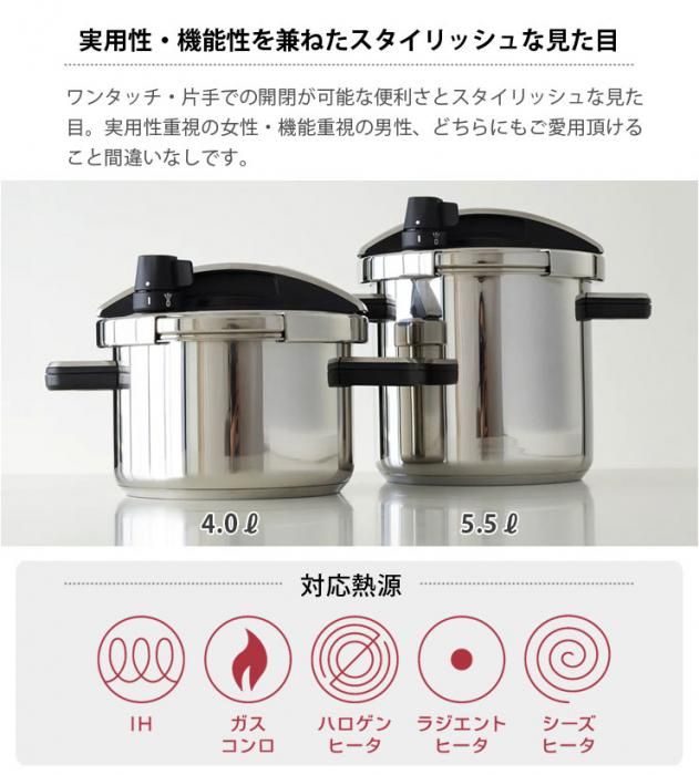 ハイプレッシャークッカーは5.5Lと4.0Lの2サイズをご用意しております。