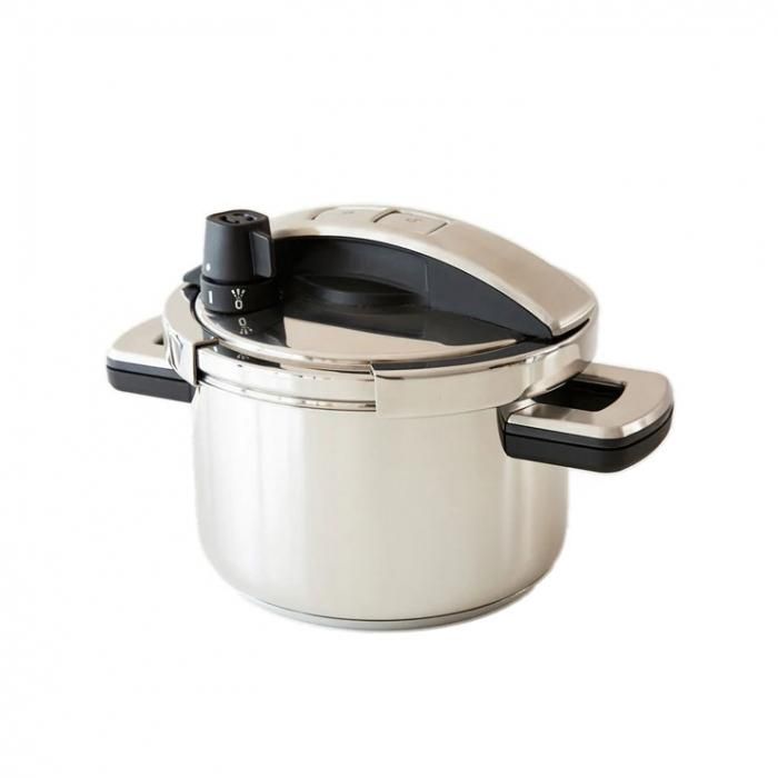 圧力がかかりすぎないように調整をするセーフティーバルブや、加圧時には開閉できないよう安全弁がついているなど、さまざまな安全装置を装備。高圧力鍋初心者にもやさしく安心な設計です。