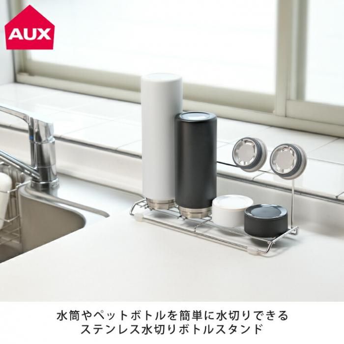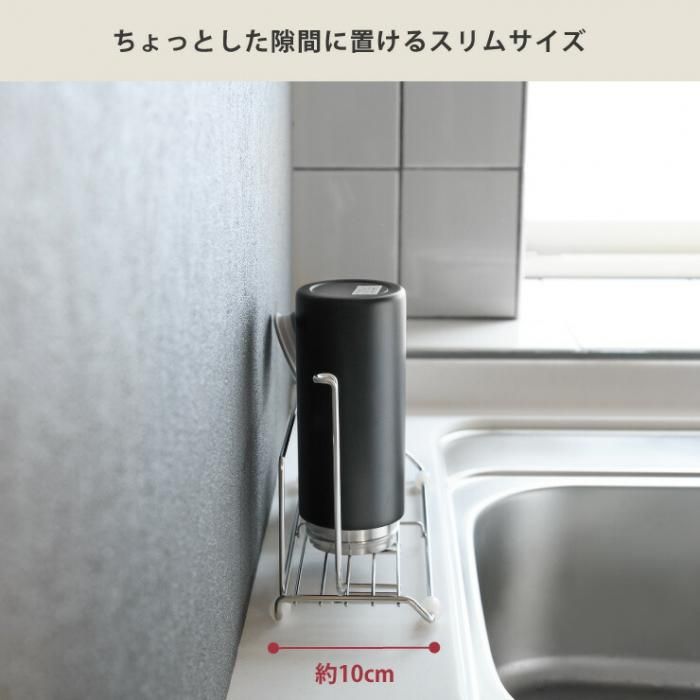 水筒やペットボトルを簡単に水切りできるスリムなボトルスタンド。奥行が10cm以上あればちょっとした隙間に置くことができます。