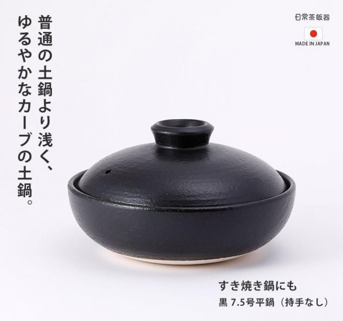 普通の土鍋より浅く、ゆるやかなカーブの土鍋。煮崩れも少なく、テーブルに置いた時に高さを感じません。