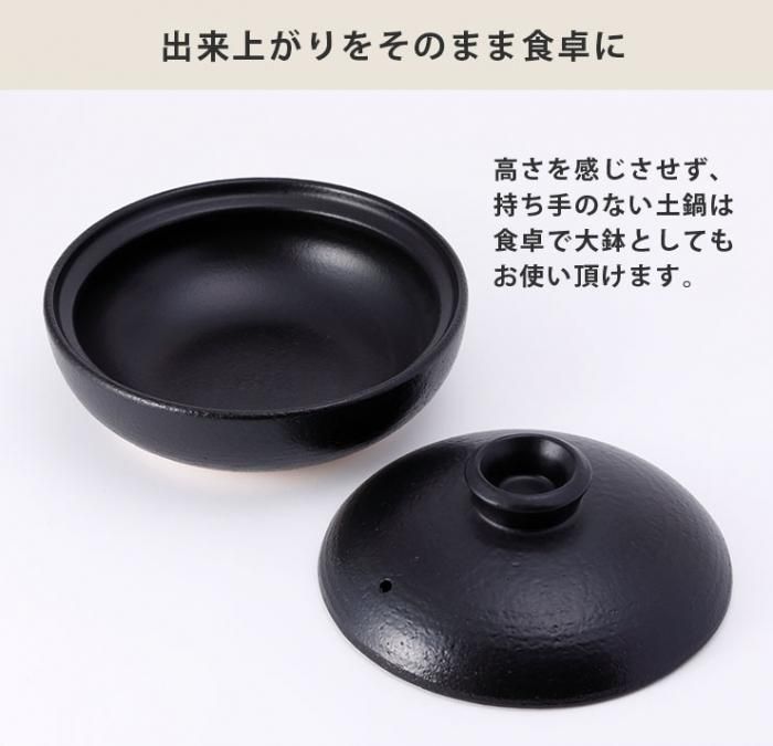 持ち手がなく、食卓で大鉢としても使える萬古焼土鍋