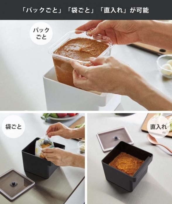タワー みそパックごと収納ハンドル付き密閉フードコンテナ 7737/7738 分類で探す キッチングッズ キッチン小物 保存容器 キャニスター ブランドで探す 山崎実業 タワー tower 価格帯(税込) 1,000円台の商品 キッチン用品 送料無料 ラッピング承ります みその風味を落とさず保存できる みそをパックごと入れられる密閉バルブ付きフードコンテナtower-7737-8 1,540円(税込) 在庫入荷待ちホワイト1,540円(税込)1,540円(税込)ブラック1,540円(税込)1,540円(税込) 数量 カートに入れる 製品について性能詳細お買い物ガイドクロッカについてみその風味を落とさず保存できる!みそをパックごと入れられる密閉バルブ付きフードコンテナ みそをパックごと入れられる密閉バルブ付きフードコンテナ。市販のみそをパックや袋ごと収納できます。約1500mLの大容量なので作り置きの保存にも最適。密閉できるので、みその風味を落とさずに保存できます。食洗機・電子レンジに対応。冷凍庫にも使用できます。 材質容器・蓋:ポリプロピレンパッキン・バルブ:シリコーン サイズ約W13.6×D15.1×H11cm 内寸サイズ開口部:約W13.6×D13cm高さ:約9cm 重量約270g 内容量約1500ml 生産国中国 ブランド 製造元tower -タワー 山崎実業RERATED ITEMS関連商品