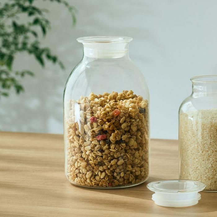 食材が美しく見え、残量が分かりやすいのでお米やシリアル、調味料などの乾物の保存にもおすすめです。