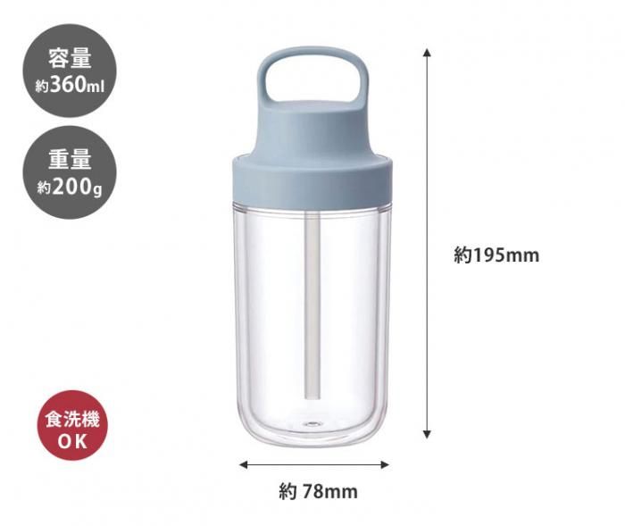 飲み口は柔らかいシリコーン素材で口当たりの良いストロータイプ。蓋は手にフィットして持ちやすいハンドル付きで、気軽に持ち歩けるデザインです。