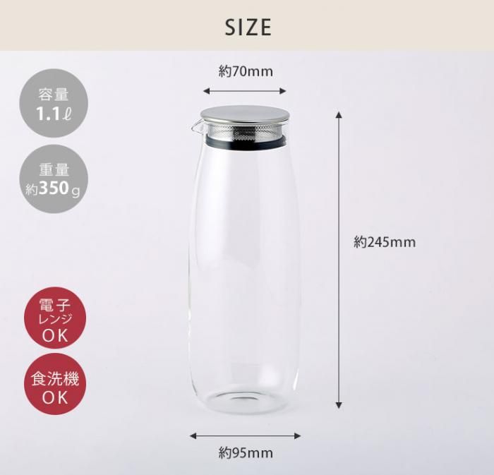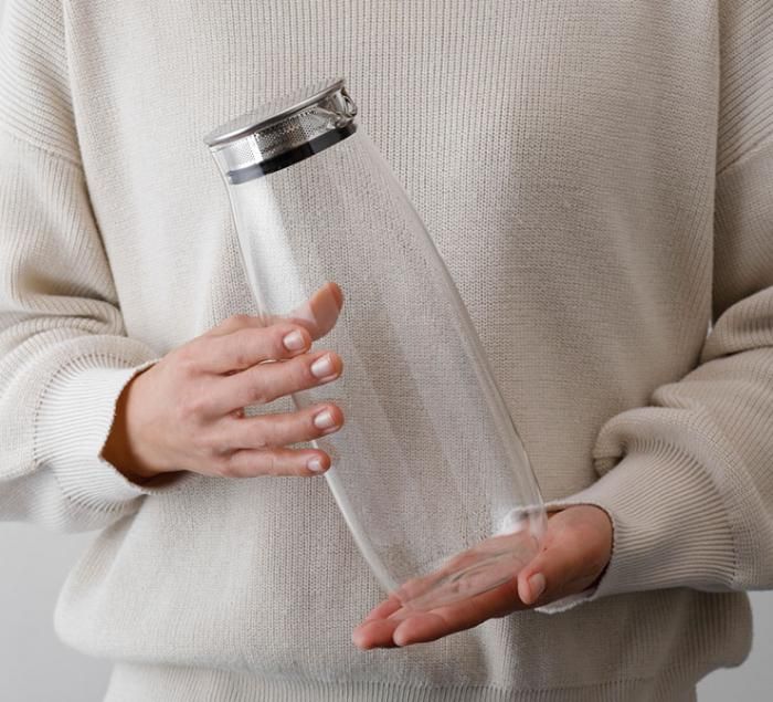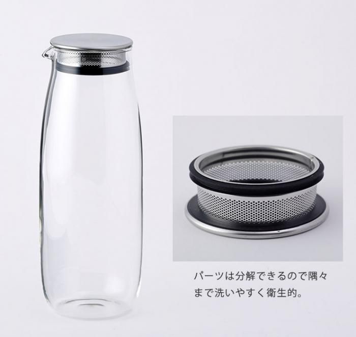 注ぐたびに開け閉めする必要がなく、フルーツやハーブを入れてフレーバーウォーターや紅茶や緑茶の茶葉を入れても留めながら注げます。
