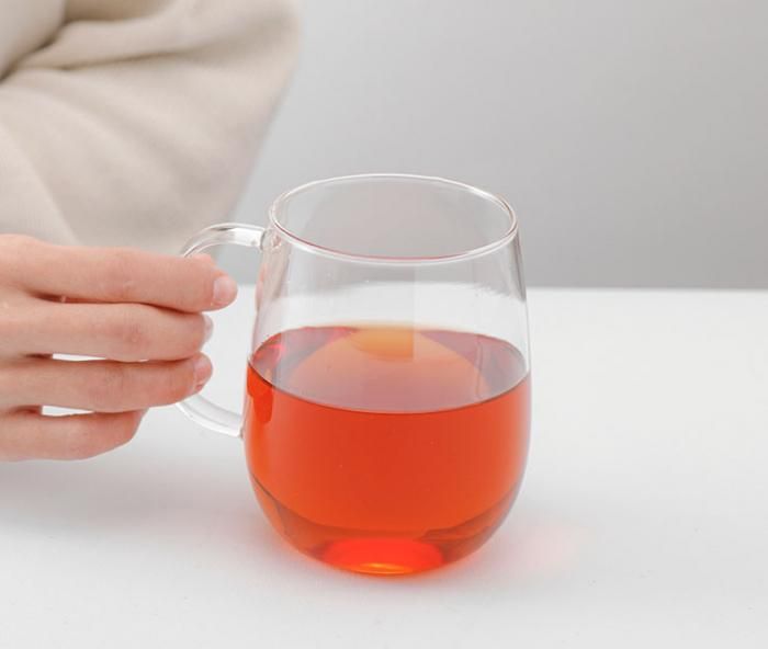 カジュアルに使えるガラスのカップ すべての指でしっかりと握ることができる ゆったりとしたハンドル 耐熱ガラス製で電子レンジでの温めや食洗機でのお手入れにも対応