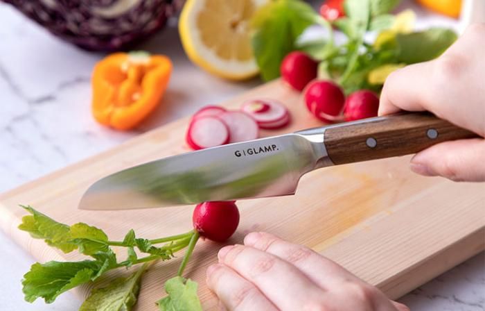 GLAMP.コンパクトナイフはワークトップやまな板の上に置いた時に、刃の先端が床から浮く構造で、とても衛生的です。