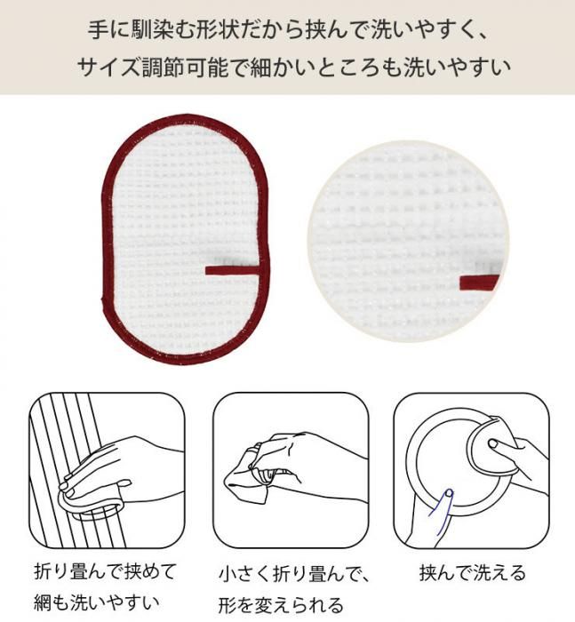 三百十日商店 ニットスポンジ 楕円形 メール便 分類で探す キッチングッズ キッチン小物 シンクまわり たわし・スポンジ ブランドで探す 逸品社 三百十日商店 価格帯(税込) 1,000円以下の商品 キッチン用品 ラッピング承ります 抗菌効果が長く続き衛生的 臭いもガードするニットスポンジ 大きく挟んだり 小さく折りたたんだりなど 形を変えて洗えます 速乾性にも優れています 洗濯・漂白可 sg-sts-10923-4 605円(税込) 150円 在庫入荷待ちレッド605円(税込)605円(税込)在庫なしブルー605円(税込)605円(税込)在庫なし 数量 カートに入れる 製品について性能詳細お買い物ガイドクロッカについて 抗菌効果&防臭効果が長く続く、楕円形のニットスポンジ 抗菌効果が長く続くスポンジ。少し粗いニットの二層構造。泡切れの良さと速乾性に優れています。折りたたんで挟んだり、小さく折りたたんだりなど、形を変えて洗えます。指先に包めば細かい部分も洗いやすい形状です。洗濯・漂白をしても機能は落ちません。使用後は吊るして乾かせます。 特殊構造の糸「ミューファン」は、透明ポリエステルフィルムに純銀の被膜をつくり、2枚のフィルムの被膜面を貼り合わせて細くカットした糸です。切断面に露出する銀からイオンが放出され、非常に高い抗菌性を発揮します。「ミューファンR」から発生する銀イオンの力で、抗菌・防臭機能が持続します。雑菌の繁殖を抑え、嫌な臭いの発生を防ぎます。ミューファンは特殊構造の糸のため、通常使用では酸化、硫化、塩化などで銀は変色しません。銀は、古くから銀食器や食品添加物として銀箔を食することも認められている安全性の高い金属です。 サイズW10 × D15cm 重量約12g 材質ナイロン87%、綿13%(ミューファンのスリット糸使用) 生産国日本 備考 本品はニット製品のため洗うと縮みが生じますが、品質に問題はありません。形を整えて通気性の良いところへ干してください。 洗濯・漂白可 ブランド 製造元三百十日商店(さんびゃくとおかしょうてん) -シュガーランド 逸品社RERATED ITEMS関連商品抗菌ルースター AD‐1 パイルクリーナー コップ・グラス・食器等に抗菌ルースター AD‐2 クロスクリーナー 鍋・フライパン等に抗菌ルースター AD‐3 クロスクリーナー 食器等に抗菌ルースター AD バスクリーナー亀の子たわし 1号 小亀の子たわし 3号 中亀の子たわし 4号 大スクラブダディー マルチスポンジスクラブマミー スポンジ