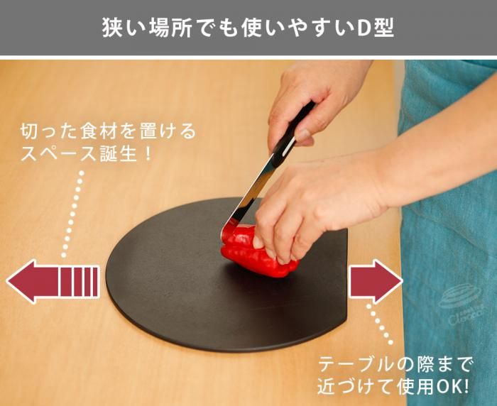 Dの形で奥行きがあり、調理がしやすく、まな板を立てかけても安定感があります。適度な重みがあり、調理中も滑らず使えます。