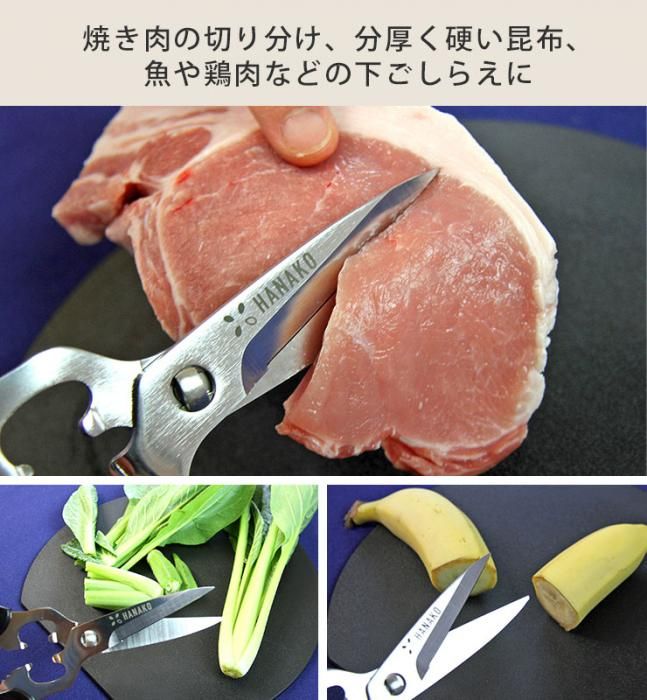 『HANAKO キッチンハサミ』は裏刃にくぼみをつけることで、切り逃げのない確かな切り心地が一番の特徴。岐阜県関市で熟練の職人により、1本ずつ丁寧に作られています。