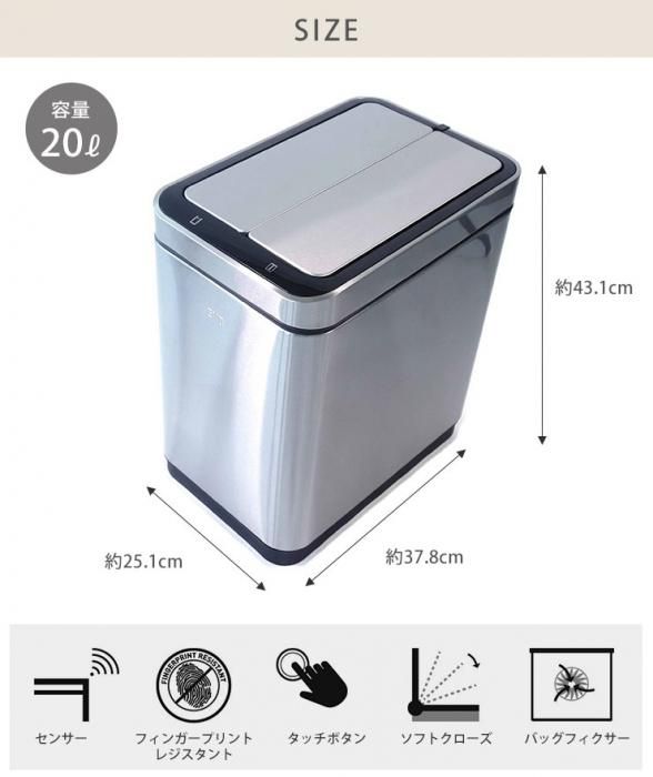 20Lはリビングなどのお部屋や複数個置いてキッチンでの分別用などにおすすめ。