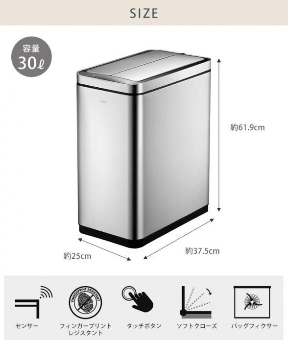 30Lはやや大きめで、ごみが多くでるキッチンでの使用におすすめ。オフィスや仕事部屋に置いてもスタイリッシュです。