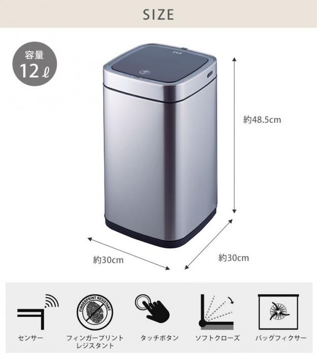 エコスマート X 充電式センサービンは6L、9L、12Lの3サイズ展開。洗面所や化粧台まわり、寝室などにおすすめです。