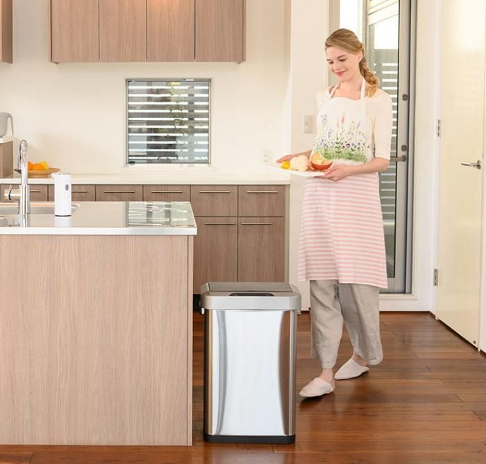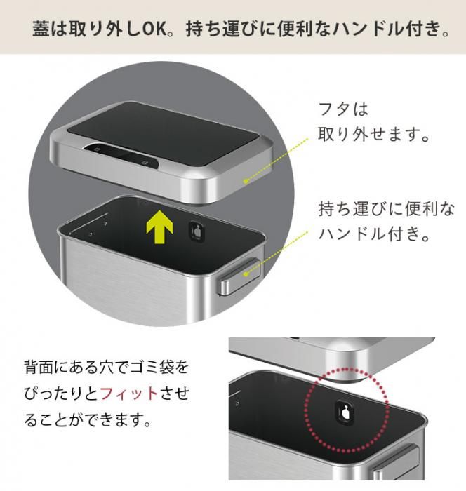 手をかざすだけでフタが自動開閉。スタイリッシュで生活感を隠せるセンサーゴミ箱。電池式でコンセント不要。