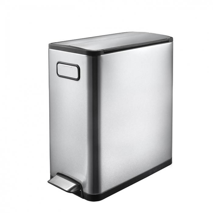 キッチンカウンターの下などにも置ける両開きのペダル式ゴミ箱
