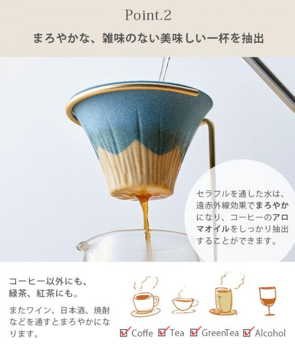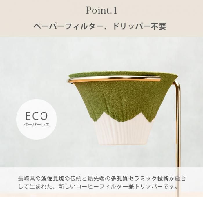 Cerafulは、400年以上の歴史を持つ長崎・波佐見焼の伝統と、最先端の多孔質セラミック技術が融合して生まれた、ペーパーフィルター不要の新しいコーヒーフィルター兼ドリッパーです。