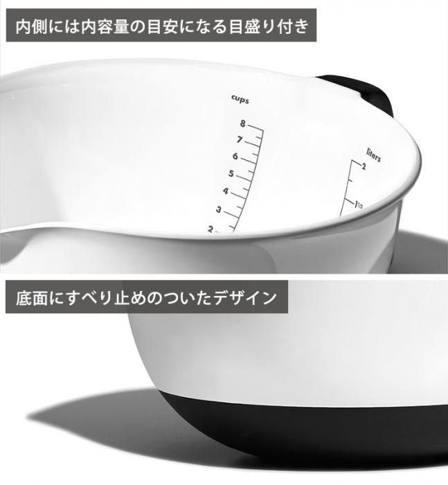 オクソー ハンドル付きボウル2L OXO 1144000 分類で探す キッチングッズ 食器・カトラリー 食器 ボウル・鉢 ブランドで探す オクソー OXO 価格帯(税込) 2,000円台の商品 キッチン 送料無料 ラッピング承ります 卵やソースを混ぜたり パン生地をこねたり クリームを泡立てたり ドレッシングを作ったり 万能に使えるボウルoxo-1144000 2,860円(税込) 在庫入荷待ちハンドル付きボウル2L2,860円(税込)2,860円(税込)在庫なし 数量 カートに入れる 製品について性能詳細お買い物ガイドクロッカについてしっかりつかめるハンドル付きボウル 卵やソースを混ぜたり、パン生地をこねたり、クリームを泡立てたり、ドレッシングを作ったり、万能に使えるボウルです。手に負担がかかりににくい、人間工学に基づいた握りやすいハンドルで快適にお使いいただけます。深めで中身が飛び散りにくいデザインと、液だれしにくい注ぎ口で、まわりを汚さずに使用できます。 食器洗い乾燥機がご使用いただけます。 サイズ約W21.5× D28 × H11.5cm 重量約333g 材質ポリプロピレン、熱可塑性エラストマー 耐熱温度本体:120℃ 生産国中国 備考食器洗乾燥機使用可 ブランドoxo -オクソーRERATED ITEMS関連商品BMS バット S 30取 富士ホーローBMS バット M 21取 富士ホーローBMS バット L 18取 富士ホーローBMS バット LL 15取 富士ホーロー富士ホーロー BMS 片口 ボウル 12cm 0.4L富士ホーロー BMS 片口 ボウル 15cm 0.8L富士ホーロー BMS 片口 ボウル 18cm 1.2L富士ホーロー BMS 片口 ボウル 20cm 1.7L