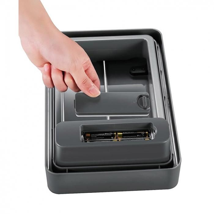 蓋は両開きで、高さの制限がある場所にも置くことができます。