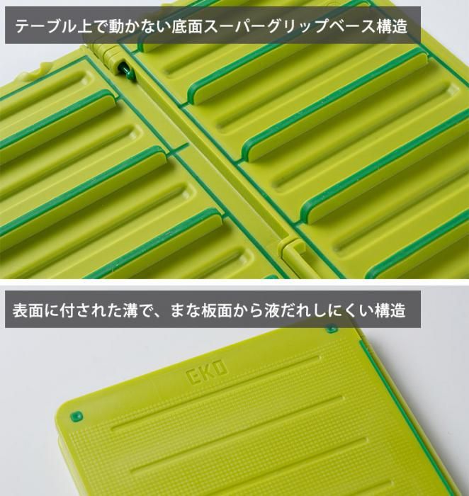 表面に付された溝に余分な水分が溜まり、まな板面から液だれしにくい構造です。