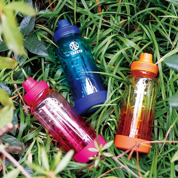 スポーツ、ワークアウト、アウトドアのシーンで活躍。本体は軽量で丈夫なトライタン素材のダイレクトに飲めるプラボトルです。