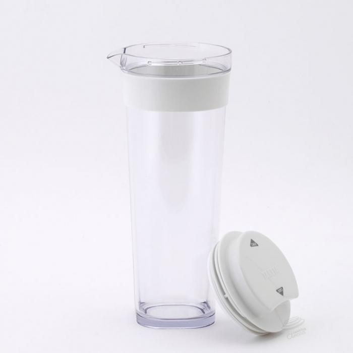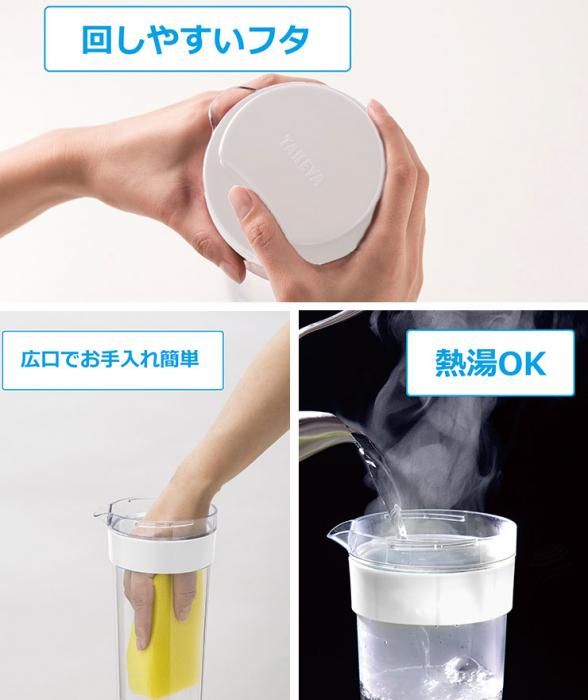 TAKEYAのジャグは、らくらく持ち運びできる軽いプラスチック製。水差し本体の耐熱温度は100度だから、熱湯をそのまま注ぐこともできます。