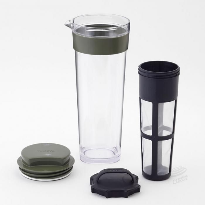 ○ 茶こしに蓋がついているので粉が飛び散らず、横置きでも水出しコーヒーが作れます。