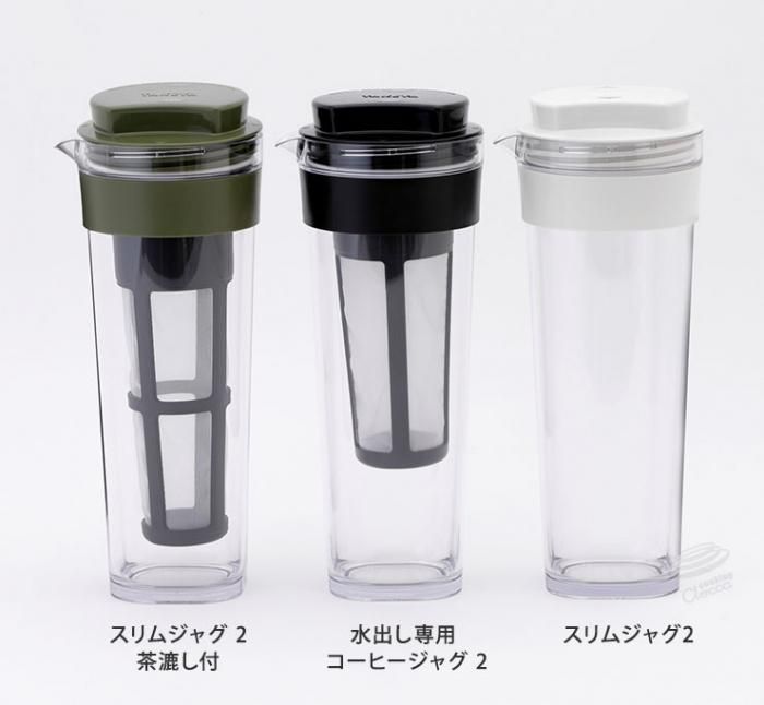 スリムジャグ1.1Lやハンドル付きで2.2Lの大容量タイプのファインジャグ、水出しコーヒー専用のスリムジャグもご用意してます。