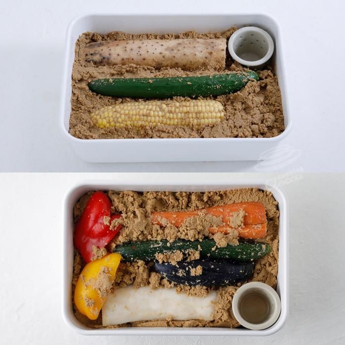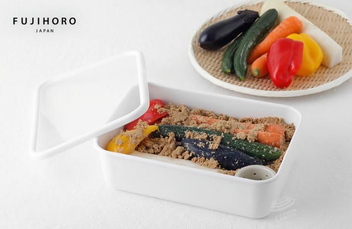 富士ホーロー ちょっとぬか漬け容器 L NK-401 ぬか漬けレシピ付き 送料無料 分類で探す キッチングッズ キッチン小物 保存容器 漬物容器 ブランドで探す 富士ホーロー 価格帯(税込) 4,000円台の商品 キッチン用品 送料無料 ラッピング承ります きゅうりやとうもろこしなどの長い食材も切らずに漬けられる 大きめのホーロー製ぬか漬け容器 表面がガラス質で雑菌が繁殖しにくく 清潔です 陶器製の水取り器付き fuji-nk-401 4,950円(税込) 0円 在庫入荷待ちLサイズ4,950円(税込)4,950円(税込) 数量 カートに入れる 製品について性能詳細お買い物ガイドクロッカについて きゅうりやとうもろこしなどの長い食材も切らずに漬けられる きゅうりやとうもろこしなどの長い食材も切らずにぬか漬け。表面がガラス質で雑菌が繁殖しにくく、清潔なホーローぬか漬け容器です。ホーローは食品と化学反応を起こしにくく、食材の風味を損ないません。容器に匂いもつきにくく、ぬか漬け容器として最適な素材です。 老舗の日本料理店「日本橋ゆかり」の三代目野永喜三夫氏が考案したぬか漬けレシピ集が付属しています。ぬか漬けの新提案「ぬかサラ」は絶品。出来上がったぬか漬けを、調味料をかけずにオリーブオイル、ごま油などをかけてサラダ感覚で召し上がる新しい食べ方です。 ぬか床とこの容器があれば、初めての方でも手軽にはじめることができます。ぬか漬けは生の野菜にはない栄養や、少ない栄養分をアップしてくれます。また植物性乳酸菌を豊富に含み、腸内環境を整えます。 ちょっとぬか漬け容器の良いところPoint.1 余分な水分を取り除くのに便利な水取り器付き Point.2 中身が確認しやすい透明なフタ Point.3 丈夫で破損しにくく、柔軟性がありスムーズに開閉できるフタのフチ サイズ約W30×D21×H8.5cm 重量約1.13kg 満水容量約4.4L 容量目安乾燥ぬか床 約1.2kg加水ぬか床 約2.4kg 材質本体:ほうろう用鋼板、ふた:エラストマー、水取り器:陶器 ホーローについて 手作業で釉薬を掛けるため、ひとつひとつの表情には多少の個体差が生じます。 ホーローの性質上、焼成時に黒点や色むらの様に見える部位が生じる場合がございます。 鋼板の切り口となる部分は釉薬がかかりにくく、下地の黒いスジが多少見られますが黒い部分もホーロー加工が施されております。上記の様な場合でも不良ではなくご使用には問題ございませんので安心してお使い下さい。 備考 タイ工場製(富士ホーロー 自社工場) 電子レンジ使用不可 日本琺瑯工業会認定Sマーク取得 食洗機使用可 製造元富士ホーロー -ふじほうろうふじほーろーRERATED ITEMS関連商品富士ホーロー ぬか漬け容器 NK-201野田琺瑯 レクタングル 深型 LL 3.2L WRF-LL野田琺瑯 スクエア S 0.32L WS-S野田琺瑯 スクエア M 0.8L WS-M野田琺瑯 スクエア L 1.2L WS-L