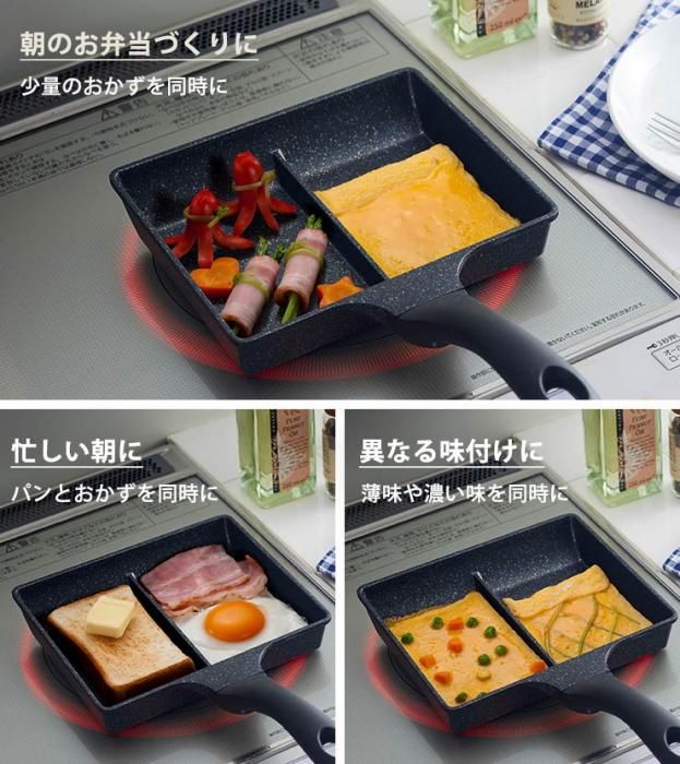 竹原製缶 IHマーブルツインパン NEO TP-16 送料無料 分類で探す キッチングッズ フライパン ブランドで探す 竹原製缶 価格帯(税込) 3,000円台の商品 キッチン用品 送料無料 ラッピング承ります 同時に2つの調理ができる 仕切り付きのフライパン 一度に少量の具を同時に焼いたり温めたりできるので 効率よくスピーディーに調理できますtakehara-tp-16 メーカー希望小売価格3,850円(税込) 3,300円(税込)0円 会員価格: 2,970円(税込) 10%off 数量 カートに入れる 製品について性能詳細お買い物ガイドクロッカについて同時に2つの調理ができる、仕切り付きのフライパン 朝食やお弁当作りの強い味方。同時に2つの調理ができる、仕切り付きのフライパン。一度に少量の具を同時に焼いたり温めたりできるので、効率よくスピーディーに調理できます。玉子1個で玉子焼きができ、左右に仕切られているのでさらにもう1品を同時に作れます。味の違う玉子焼きも同時に調理。パンも早く焼くことができ、同時にベーコンエッグなどのおかずも作れます。2種類のマーブルコートで傷つきにくく、こびりつきにくい。アルミダイキャスト成形は変形しにくく頑丈です。ガス火やIH調理器など幅広い熱源で使用できます。 サイズ本体:約19.8 × 34.2 × 7.3cm、高さ:約3.5cm 重量約554g 材質本体:アルミダイキャスト(底の厚さ3.5mm/鉄溶射)内面塗装:ふっ素樹脂塗膜加工、外面塗装:焼付け塗装取手:フェノール樹脂(耐熱温度140度) 生産国韓国 備考○食洗機使用不可 製造元竹原製缶 -たけはらせいかんRERATED ITEMS関連商品ジオプロダクト 玉子焼 15×18cm GEO-15EPモコミチハヤミ ビタクラフト エッグパンウッドビー エッグパン CC001008-001アンバイ 玉子焼 角 FSK-001アンバイ 玉子焼 角小 FSK-002極ジャパン たまご焼き 特小極ジャパン たまご焼き 小