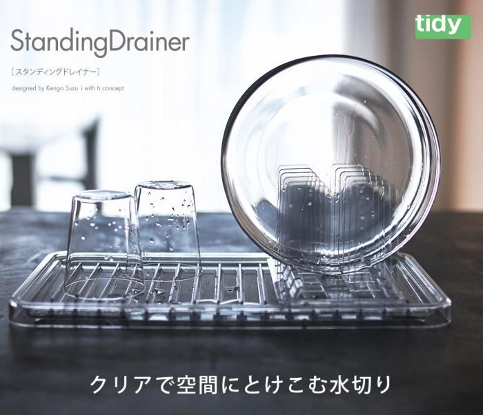 ティディ スタンディングドレイナー OT6672000 送料無料 分類で探す キッチングッズ キッチン小物 シンクまわり 水切りカゴ・トレー ブランドで探す 価格帯(税込) 3,000円台の商品 キッチン用品 送料無料 ラッピング承ります クリアで空間にとけこむ水切りです 使わないときはスタンドにトレーを立ててコンパクトに収納 トレーの傾斜で一方に水がたまり 水を捨てやすい設計ですtidy-ot6672000 3,850円(税込)0円 在庫入荷待ちStandingDrainer3,850円(税込)3,850円(税込) 数量 カートに入れる 製品について性能詳細お買い物ガイドクロッカについてクリアで空間にとけこむ水切りです。使わないときはスタンドにトレーを立ててコンパクトに収納。 クリア素材でどんなキッチンにも溶け込むスタンディングドレイナー。キッチンに置いても存在感を感じません。○トレーの傾斜で一方に水がたまり、水を捨てやすい設計です。○トレーは縦でも横でもスタンドに立てて収納できます。○スタンドは取り外し可能で好きな位置にセットできます。○取り外し可能なので、トレーが洗い易く清潔です。 サイズセット時:約W39.3×D11.3×H11.9cmトレー:約W39.3×D21×H21cmスタンド:約W18.9×D11.3×H10.5cm 重量約570g 材質ポリカーボネート 耐熱温度120℃ 生産国日本 製造元tidy -ティディ テラモトRERATED ITEMS関連商品